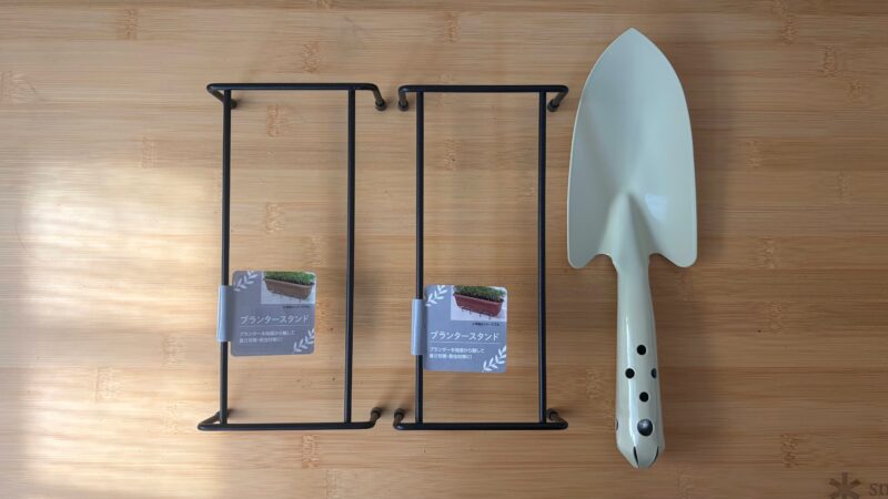 こちらもスコップとスタンドは付いていないので、100均で揃えましょう。